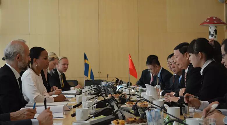 杨积极评价了瑞典的文化成就和两国文化关系。近年来,两国在文化演出和文博等领域合作十分活跃,中国的现代舞团参加了欧洲文化之都于默奥的开幕演出;《河南青铜器文明展》、《瑞典王室捐赠中国文物50周年回顾展》等先后成功举办,受到瑞典民众热烈欢迎。今年是“中瑞建交65周年”,中瑞双方举办了一系列丰富多彩、形式多样的文化庆祝活动;未来双方可在专业艺术节、电影等领域进一步加强合作。
