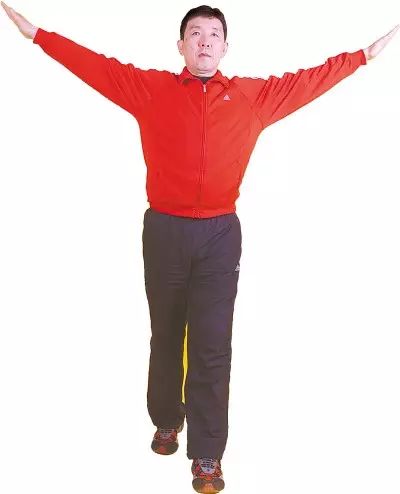 两只手侧平举,然后向上高抬45度,两只胳膊看做钟表上的时针和分针,打开到钟表十点十分的位置上,这个动作就是“十点十分”了。我们的要求就是手心朝下,胳臂举在身体两侧略靠后一点,手指头绷起来,头抬起来。就这个方法,每天坚持走200步。