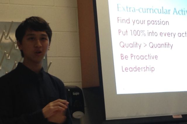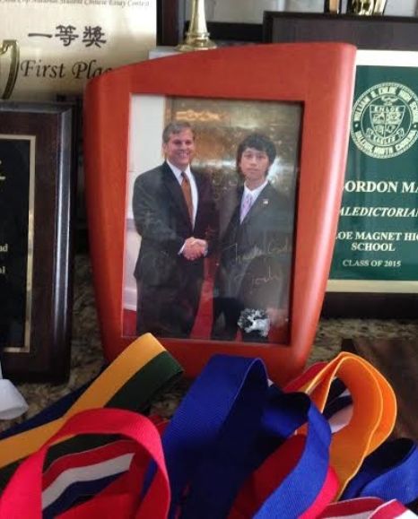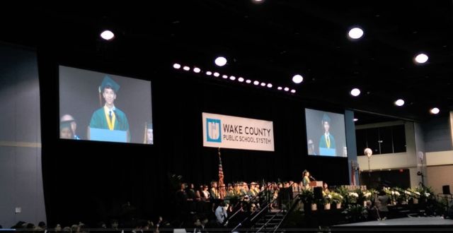 孩子的事情应当由他自己做。每当儿子在困难前表示畏难的时候,我会问他这个事情是为谁做的,学习为自己还是为父母。虽然大家都知道高中升学指导是一个非常重要的人,在儿读高中的四年间,我没有主动去见过他的Counselor或升学指导,也从未电邮联络过。我怕我说不好会耽误孩子的事。见到升学指导还是在高中毕业典礼上。毕业前的一个星期,升学指导打电话到家里,孩子去斯坦福了不在家。升学指导想提醒他申请英仑高中的一个奖学金,要他早点到学校,有些注意事项要和他交待。最终孩子众望所归的得到了这份一万美元的奖金,而一切都由他自己搞定。所有的交流包括报考大学都在老师和孩子之间直接进行。高中四年,我沒有上网查过他的成绩。他告诉我都是A,我就相信都是A。儿子高中四年的GPA是4.0,满分。加权GPA是5.76,以6分为满分。这里包括19门AP和IB课。是英伦(Enloe)高中这所北卡著名的压力锅高中历史上的最好成绩。在2015年700名学生的年级毕业生中,排名第一。