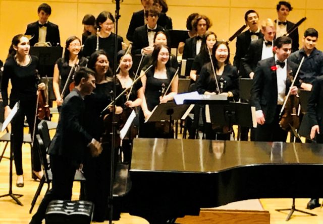 Gordon在古朴,庄严,唯美的Paine Hall指挥哈佛巴赫乐队。Harvard Bach Society Orchestra首次演奏2017-2018作曲奖获得者Tori Tong’20的作品<Coming Home>。乐曲优美感人。
